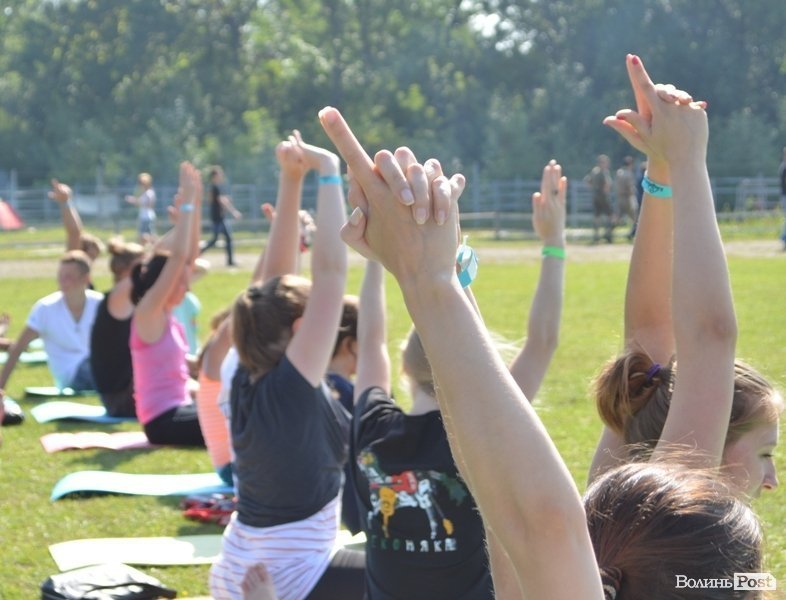 Приблизно півсотні гостей та волонтерів на другий день фестивалю «Бандерштат», 4 серпня, почали ранок з занять йогою.