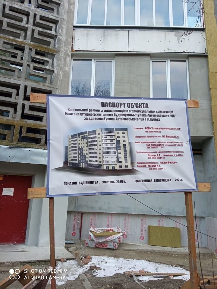 У цьому будинку тривають зовнішні ремонтні роботи. Багатоповерхівку утеплюють.