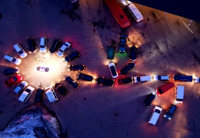 Близько 40 машин припаркувались на автостанції таким чином, що утворили фігуру квітки.
