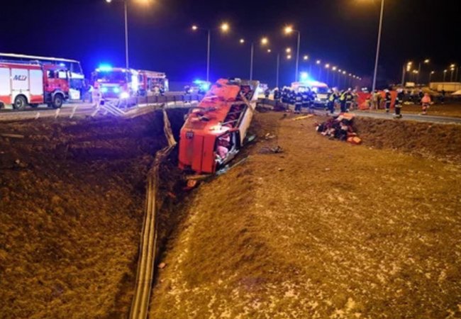ДТП з українським автобусом сталося в суботу о 00:50 за київським часом поблизу міста Радимно Підкарпатського воєводства, за 30 км від кордону з Україною. Автобус сполученням Познань - Херсон, в якому перебували 57 осіб, у тому числі двоє водіїв, перекинувся, з'їжджаючи з автомагістралі A4 до пункту обслуговування пасажирів Кашице. Унаслідок катастрофи п’ятеро осіб загинули на місці, 35 потрапили до лікарень.