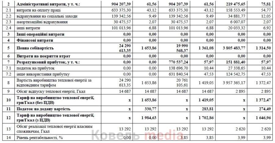 Отже, виконком вирішив встановити наступні тарифи на теплову енергію та гарячу воду, яку надає «Ковельтепло»:
