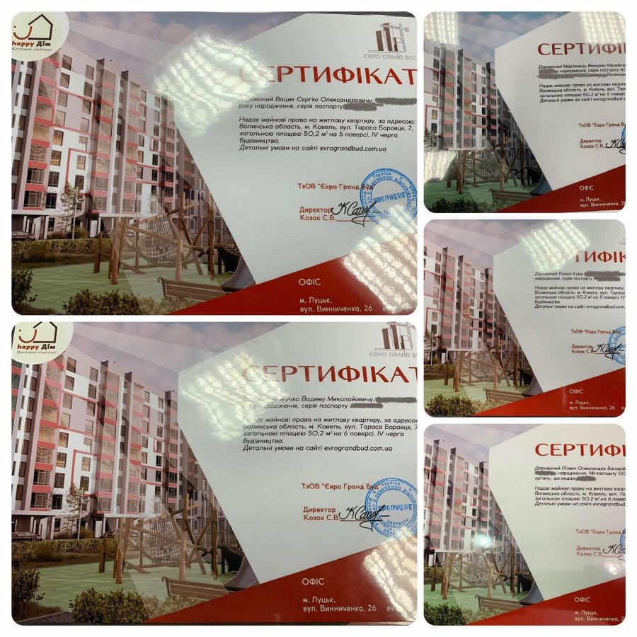 Власниками сертифікатів від забудовника стали учасники АТО: Вацик Сергій, Жучко Вадим, Рожко Ігор, Мартинець Валерій, Літвин Олександр, які добровільно в 2014, 2015 роках захищали Україну на сході.