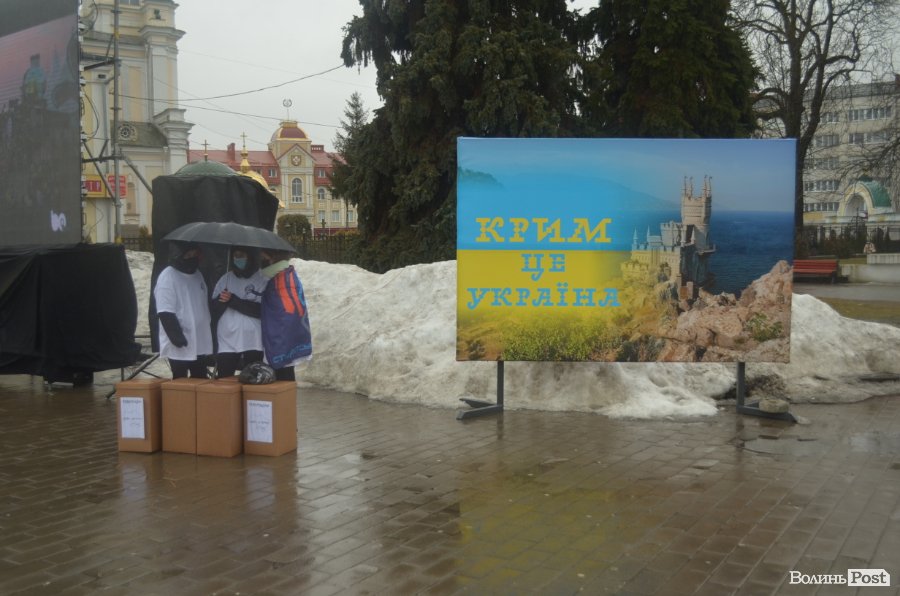 Акція, приурочена до дня окупації півострова Крим Російською Федерацією, відбувається на Театральному майдані міста з 10 ранку. Організатором є громадська організація «Студентська рада Волині».