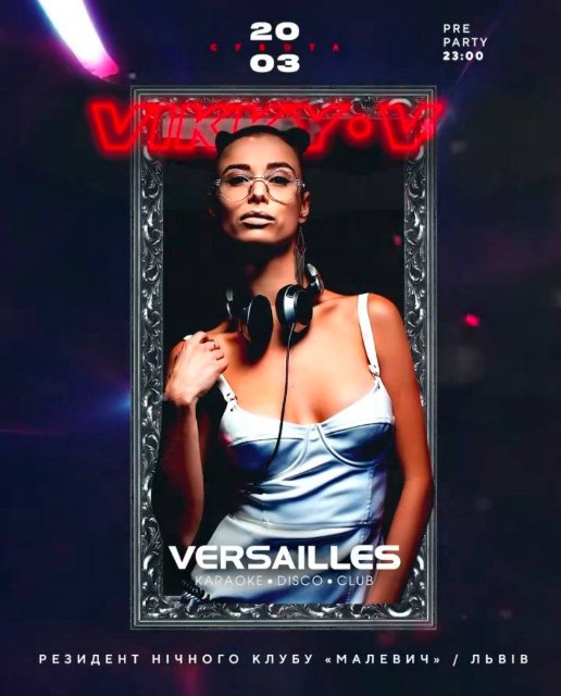 О 23 годині у у Versailles Karaoke-Disco-Club, що на вулиці Грушевського, 2, «відгремить» незабутня вечірка. Спеціальний гість: Vikky V - резизент нічного клубу «Малевич» (місто Львів).