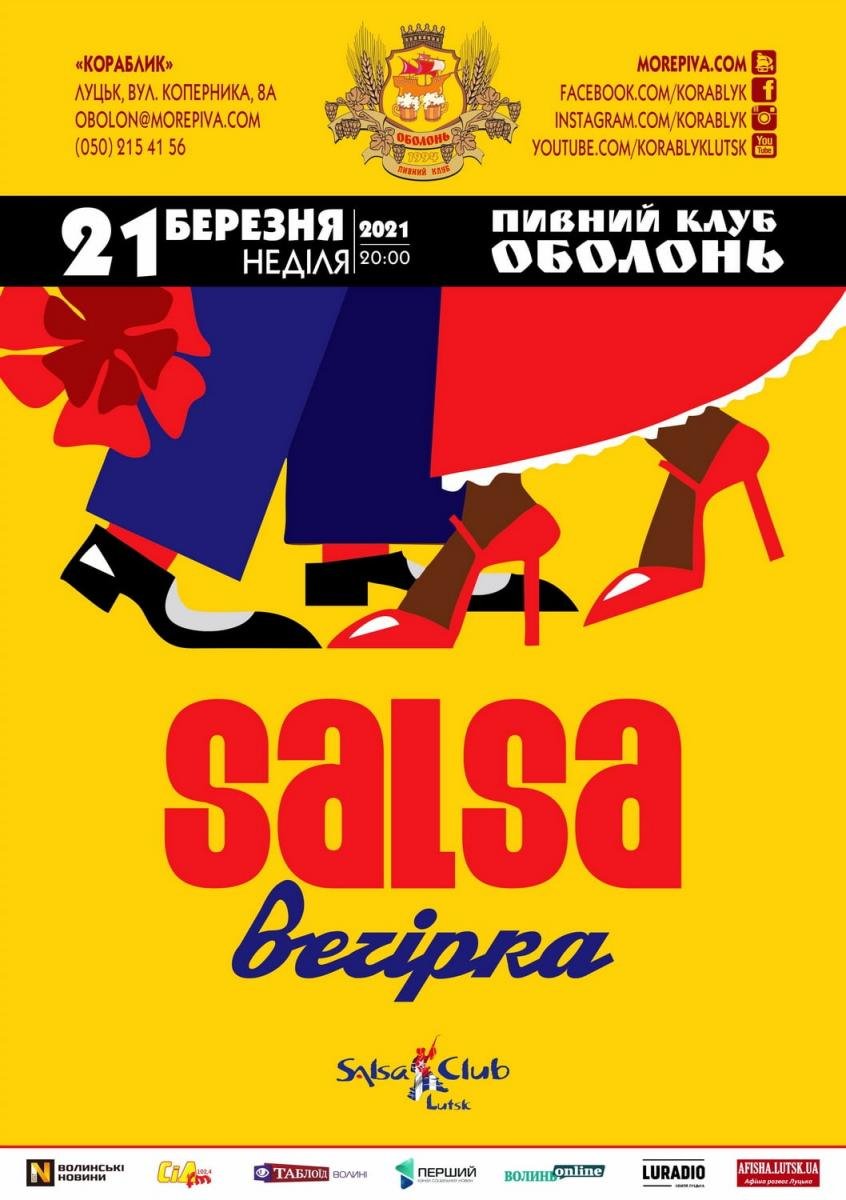 О 20 годині у пивному клубі «Оболонь» (вулиця Коперника 8а) проведуть Сальса Вечірку з «Salsa Club Lutsk».