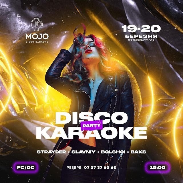 О 19 годині MOJO Disco & Karaoke, що знаходиться на Ковельській, 16, запрошують на запальну вечірку. Розважати гостей будуть Dj Strayder, Dj Slavniy, Dj Bolshoi та Dj Baks.
