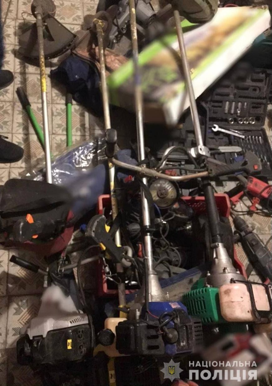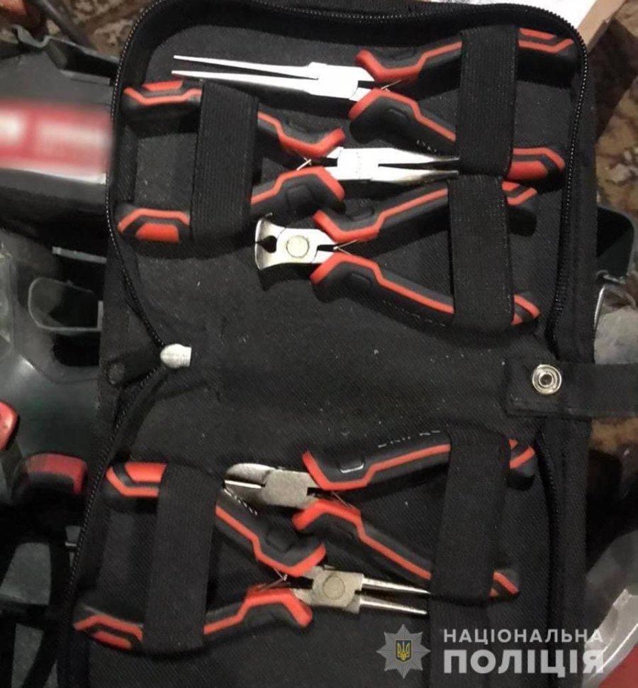 Під час обшуку виявили та вилучили велику кількість електроінструментів, кабелі, відмички, рукавички, одяг, радіостанції, засоби мобільного зв’язку та інші речі, які або можуть бути краденими, або використовувались у злочинній діяльності.