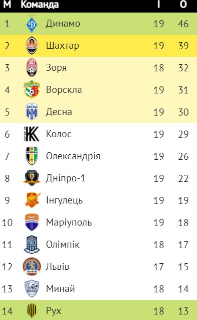 Українська Прем'єр-ліга: результати 19-го туру, таблиця