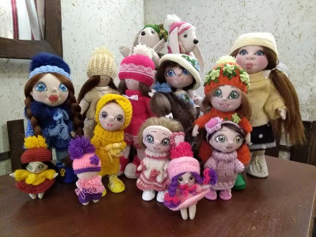 А от найскладніше робити мініатюрні лялечки, які вміщаються на долоньці. Майстриня виготовляє різні за розмірами ляльки: від 8-10 см до 50 см. Вдягає їх в одежки і в’язані, і шиті. Для вбрання своїм улюбленицям підбирає натуральні тканини. Тільця наповнює гіпоалергенним матеріалом – холлофайбером.
