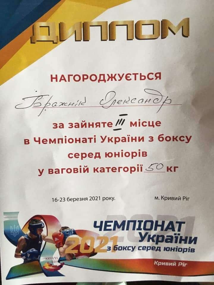 Ковельчанин Бражнік Олександр виборов бронзову медаль у ваговій категорії 50 кг. Хлопець – вихованець боксерського клубу «Панчер». Тренує спортсмена Микола Потапюк.