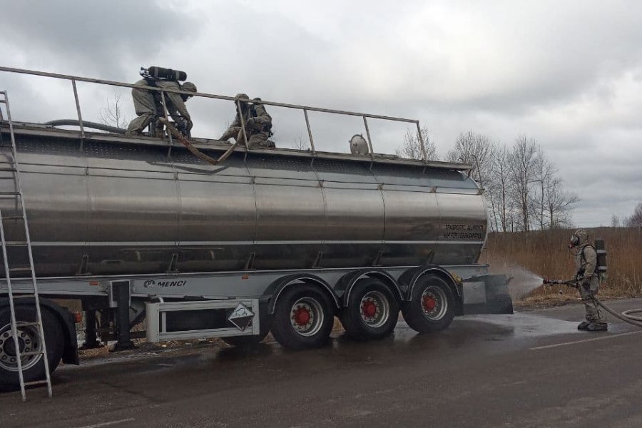 Сьогодні, 23 березня, в буферній зоні митного поста «Доманово» Ратнівського району відбулася розгерметизація однієї з трьох секцій автоцистерни вагою 23 т з неконцентрованою азотною кислотою.
