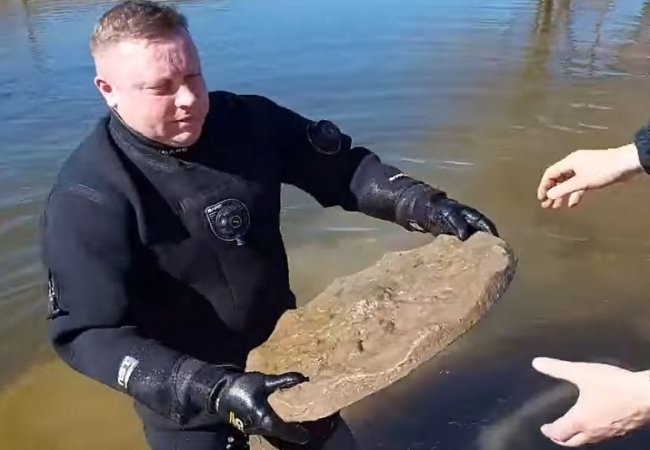 Водолази дістали з річки Стир дві з трьох робіт луцького скульптора Миколи Голованя, які невідомі кинули у воду.
