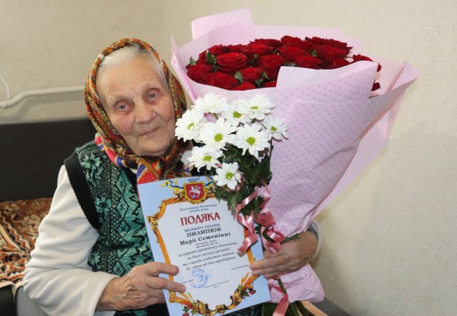 Представники міської ради завітали у село Заріччя, де нині проживає ветеран праці Марія Семенівна Пилипюк, аби привітати ювілярку, йдеться на сайті Володимир-Волинської міської ради.
