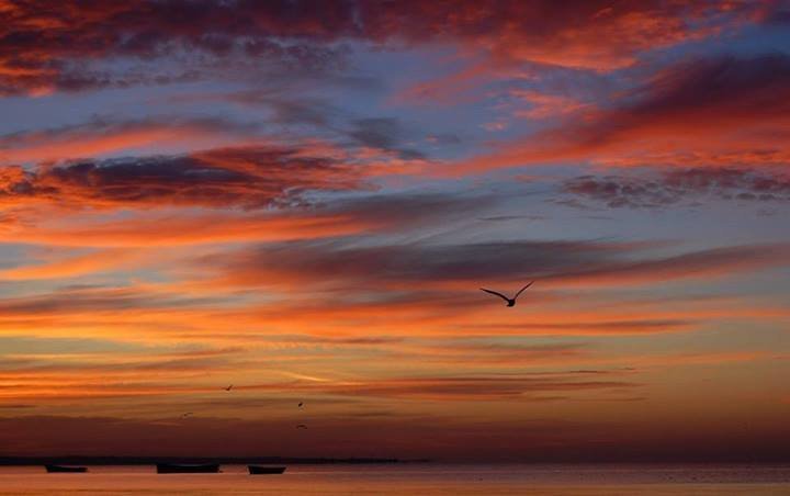 Фото зроблене в 4:22 ранку, самий час для ранкового купання, море спокійне і чисте, рибаки виходять до човнів, полохаючи птахів. 27.08.12 Азовська море, с.Широкіне