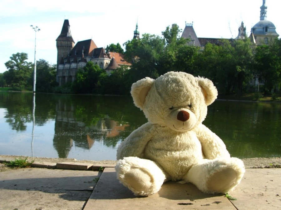 Будапешт. 8-ма година ранку. 21 червня 2012. Гарний вид на Парк Варошлігет і наш талісман Микола (ведмедик) який супроводжував весь тур. Автор Хайчик Тетяна
