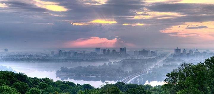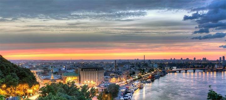 Київ, 23 липня 2013 р. З найкращої точки зйомки Подолу у Києві одразу після ввімкнення міського освітлення. Автор Олег Жарій