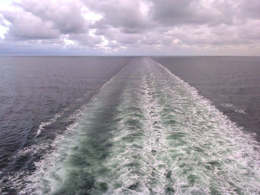 Північне море, серпень 2012 року. Сивина навислих хмар, сірі води морського безкраю пропорює лише пінистий слід парому. Відчуваєш себе самотнім кошеням у холодному світі і так хочеться додому до мами. Автор Ольга Харів