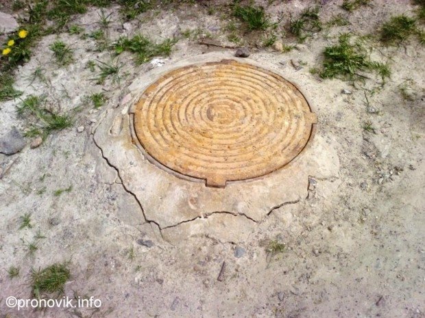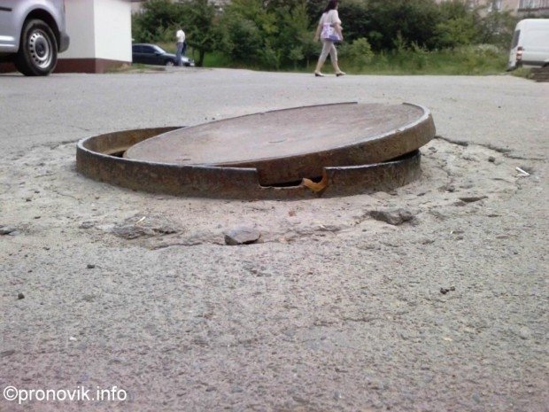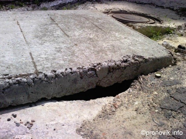 Дуже часто замість металевих люків використовують бетонні кола чи навіть квадрати, які вкладають просто посеред дороги у дворі жилого будинку. Правда, бетонні конструкції з часом руйнуються, кришаться, а міняти їх "комунальники" не поспішають.