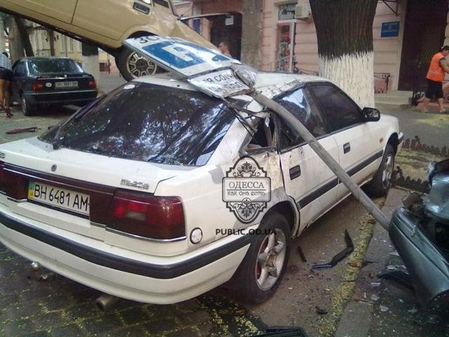 Аварія в Одесі: «жигуль» вилетів на дах Mazd’и. ФОТО
