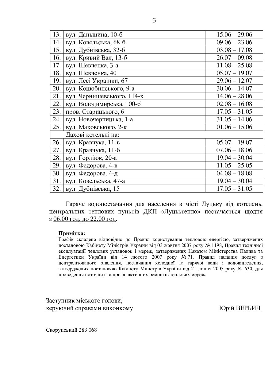 Першими без гарячої води залишаться мешканці вул. Ковельська, 47-а – 19.04 – 30.04. Найдовше із гарячою водою, відповідно до графіка, будуть мешканці вул. Шевченка, 3-а.