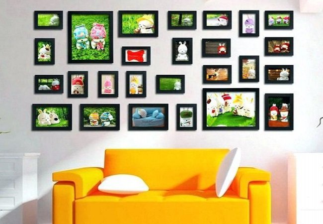 • Колаж з рамок різних розмірів і форм - відмінне доповнення інтер'єру в будь-якому стилі.