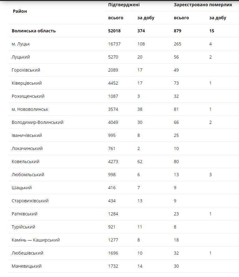 На Волині за останню добу від коронавірусу померло аж 15 людей і виявили 374 нових інфікованих
