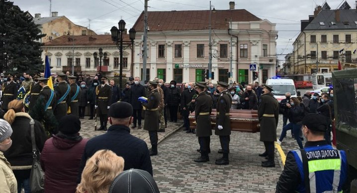 Через жалобні заходи поліція перекрила рух у центрі міста. Місцем останнього спочинку військового стане чернівецька Алея Слави.
