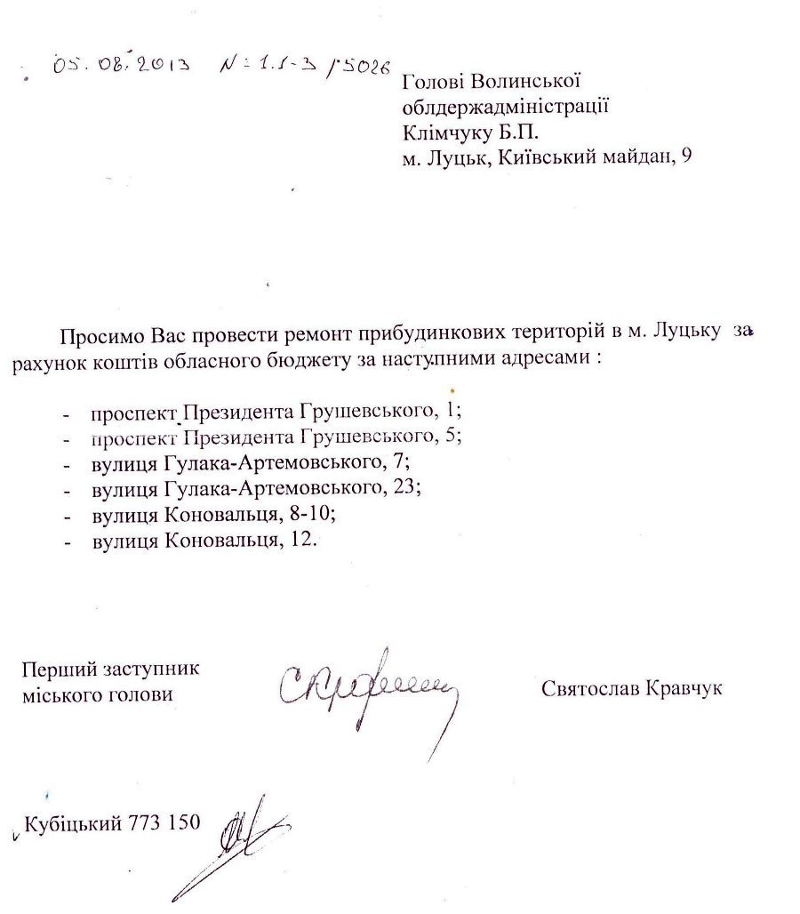 Сергій Григоренко каже: «Насправді, як ми й заявляли раніше, це нахабна брехня. Ремонти проводяться за кошти обласного бюджету з ініціативи Луцької міської ради. Доказ цьому – документ, який є у нашому розпорядженні.
