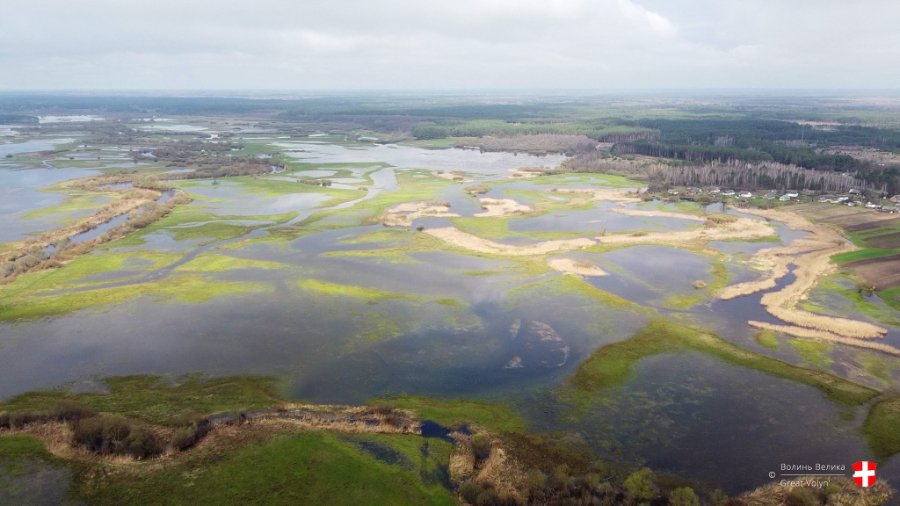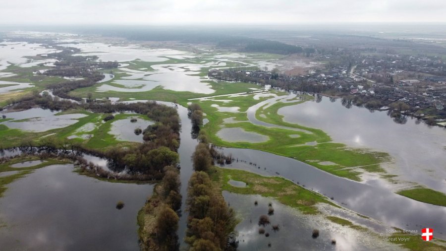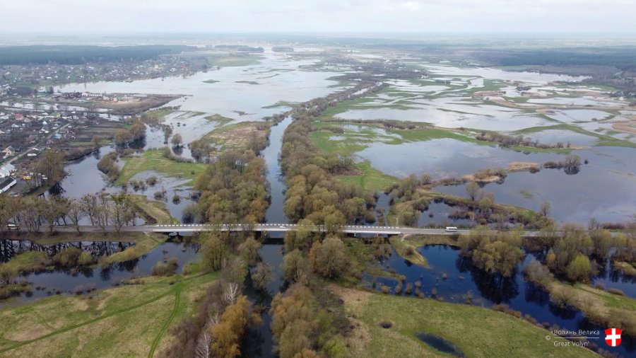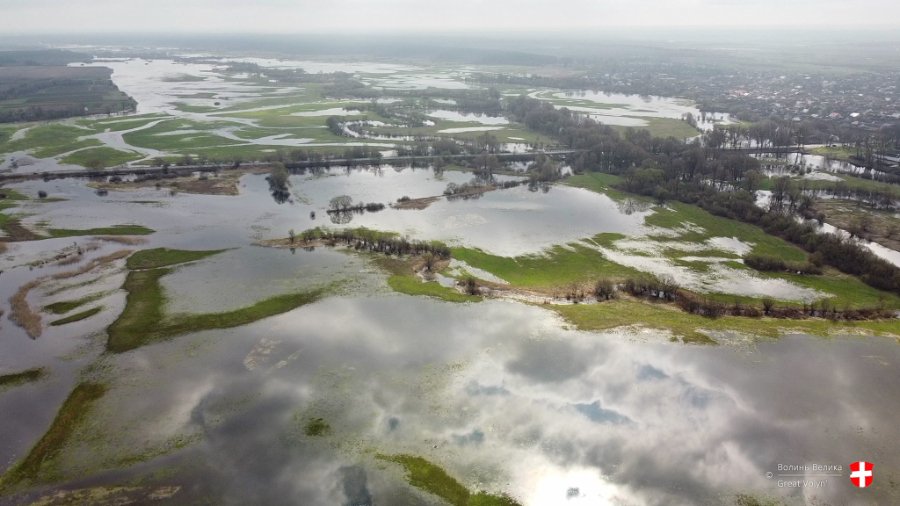 На фотографіях видно, як повноводна річка Стир вийшла зі своїх берегів.
