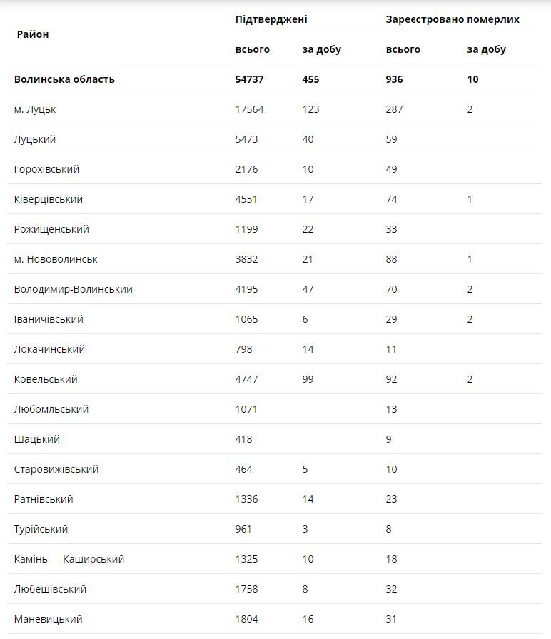 Десять смертей та 455 нових випадків: ситуація з COVID-19 на Волині за минулу добу