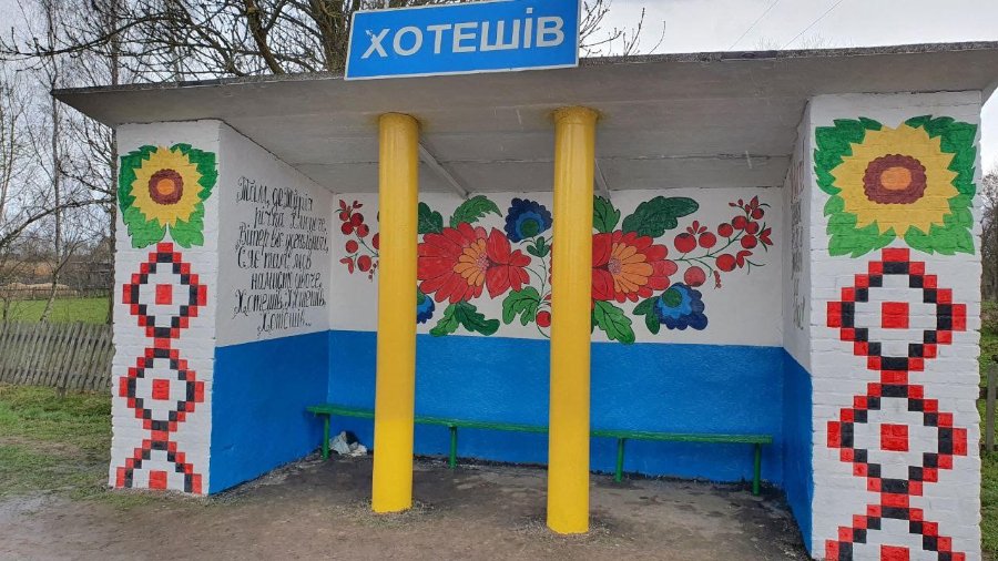У селі Хотешів місцеві жителі окультурили та розмалювали занедбану автобусну зупинку.