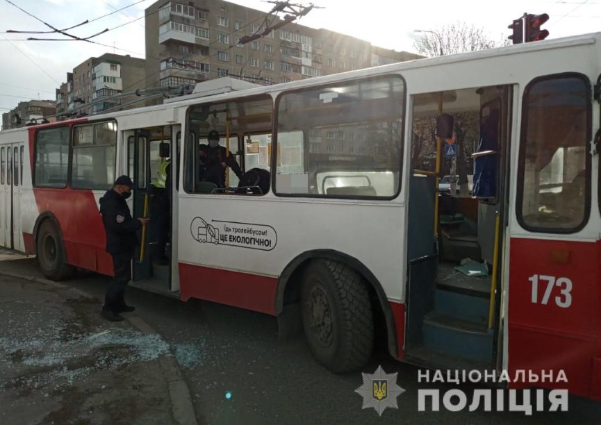 На вулиці Дубнівській у Луцьку чоловік побив вікна у тролейбусі.
