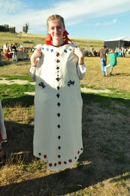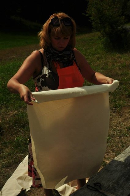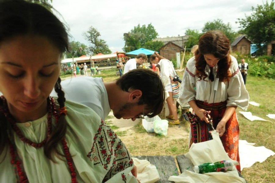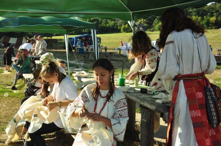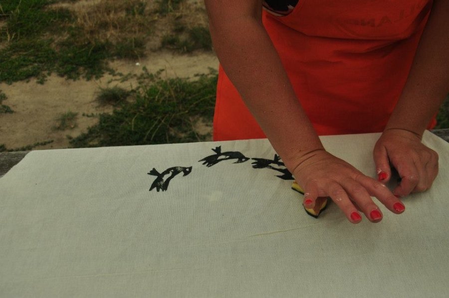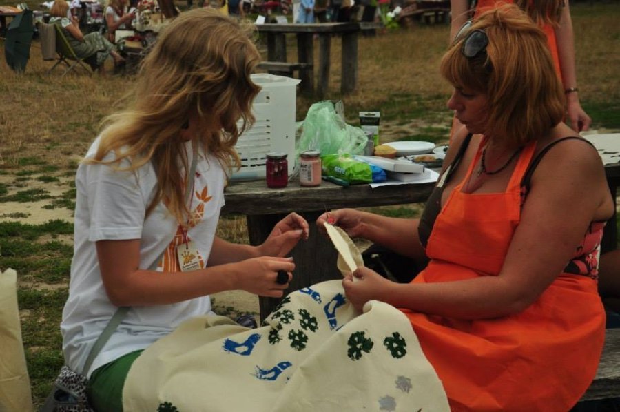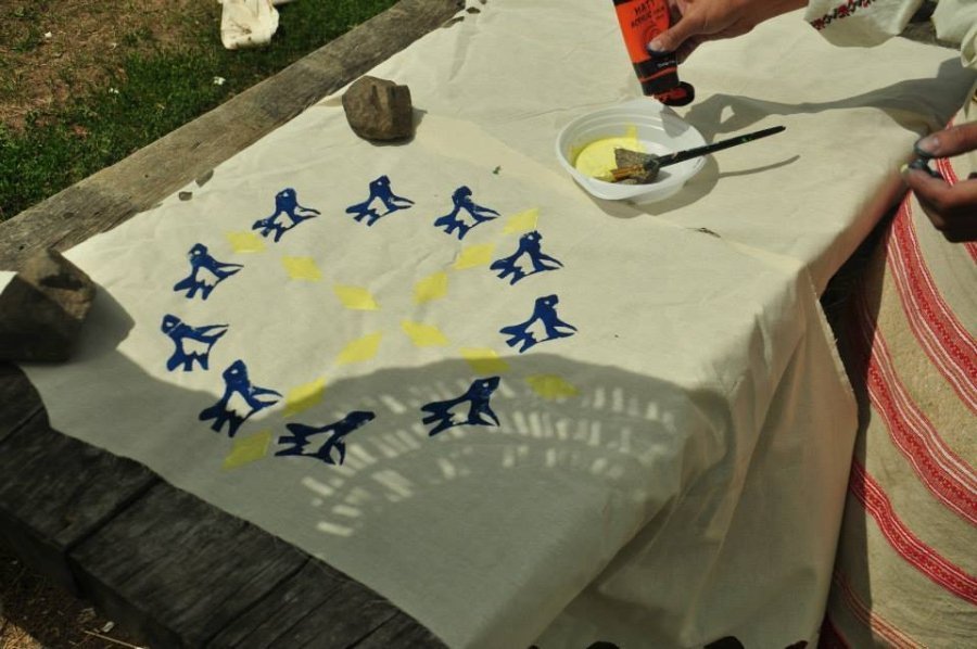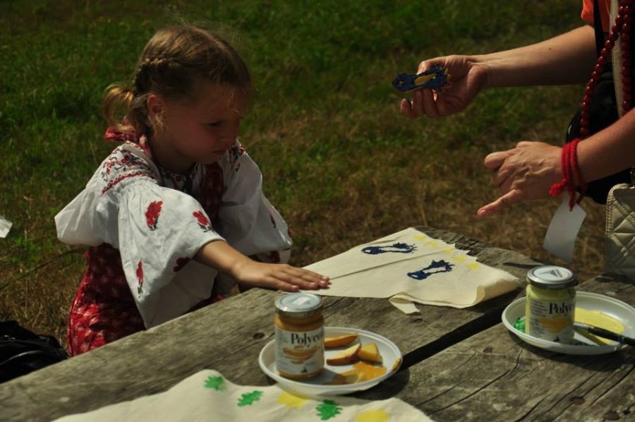 У Пирогово під час фестивалю «Етно Толока» проводила майстер-класи з вибійки, виготовлення та демонстрації колекції одягу волинська художниця і дизайнерка Тетяна Мялковська.