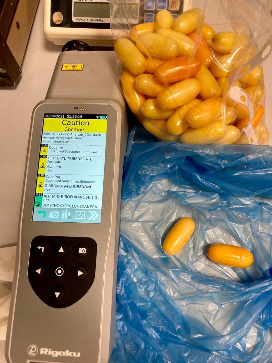 Всередині виявлених капсул, вилучення яких відбувалось медикаментозним шляхом протягом майже доби (19 годин), знаходилася порошкоподібна речовина білого кольору загальною вагою брутто 1070,29 г.