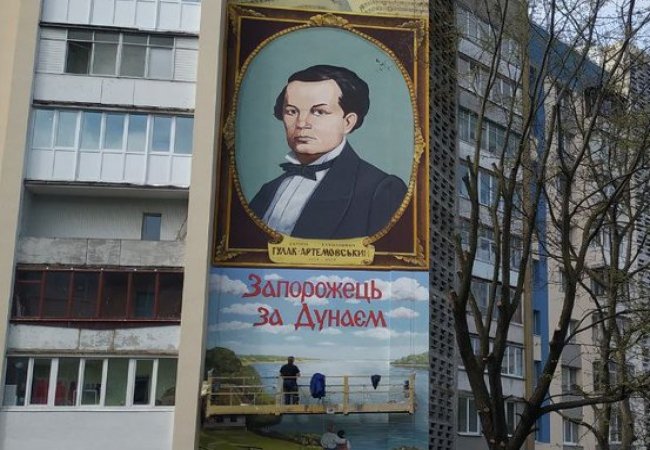 На фасаді багатоповерхівки, що на вулиці Гулака-Артемовського 15, а – портрет українського композитора і мотиви його твору "Запорожець за Дунаєм". Автор ідеї, художник Володимир Ісаков створювати мурал почав торік у грудні.