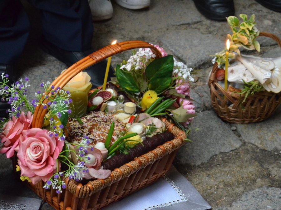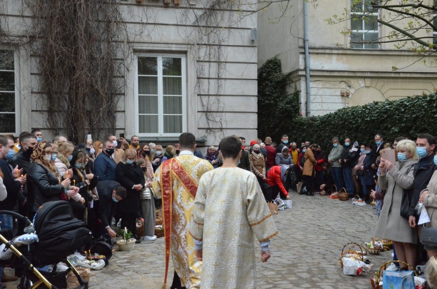Після великоднього богослужіння священнослужителі посвятили паски та великодні страви українців.