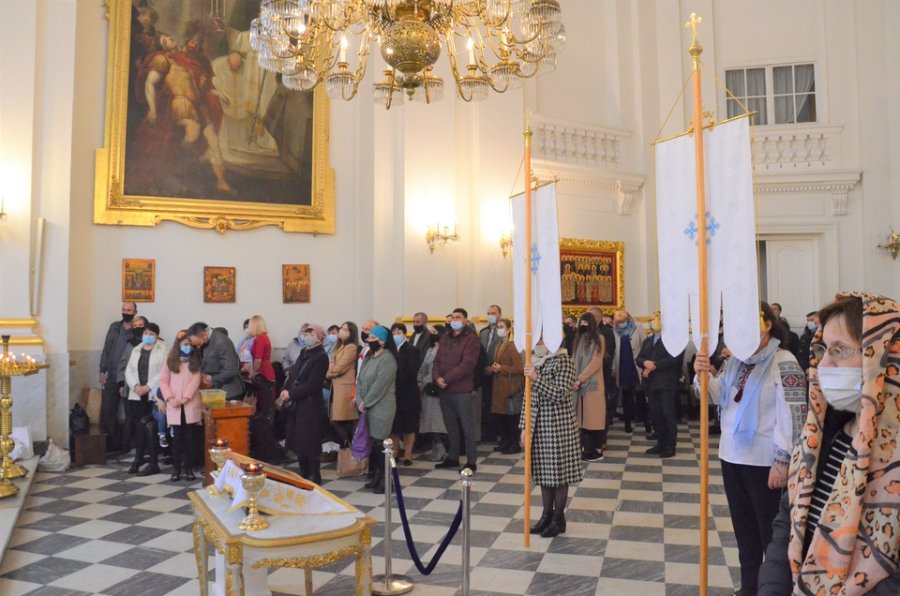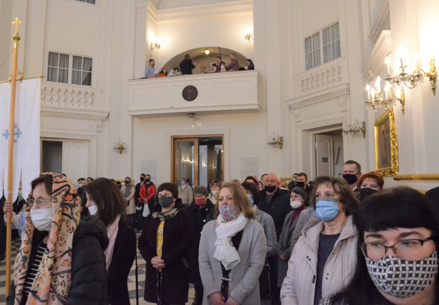 Священнослужителі обмежили кількість людей, які можуть перебувати всередині церкви, закликаючи вірян зосереджуватися у церковному дворі, передає власний кореспондент Укрінформу.
