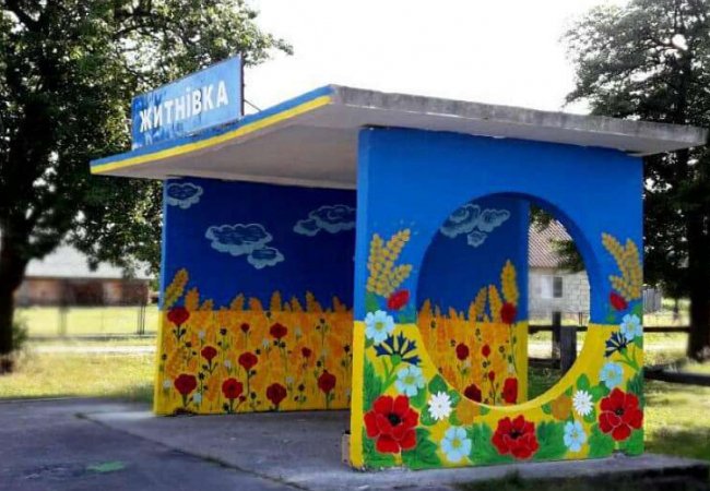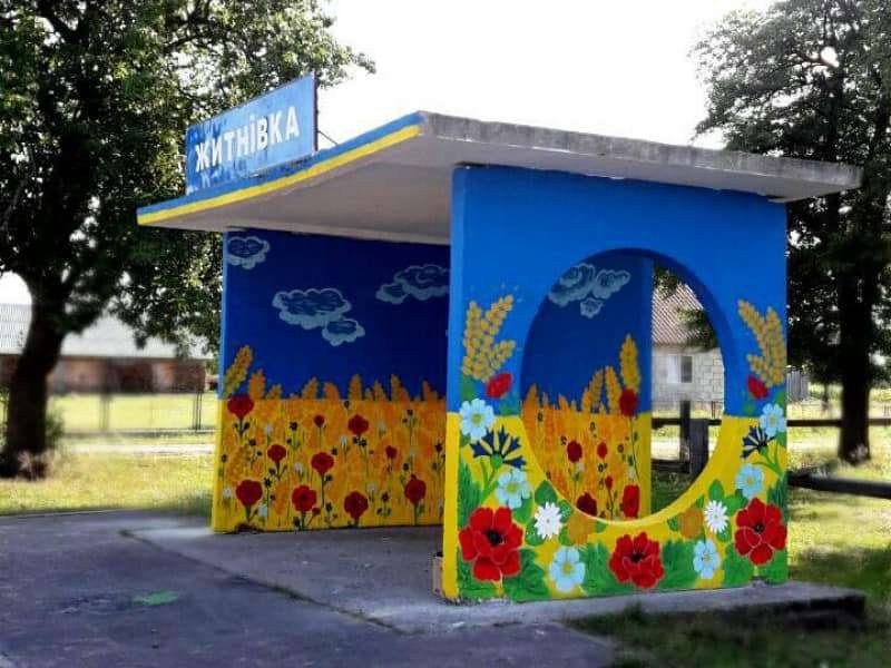 На Камінь-Каширщині у селі Житнівка дві місцеві учениці патріотично оновили автобусну зупинку.