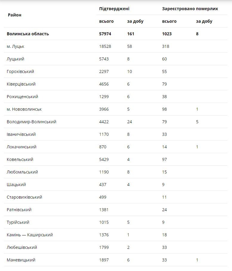 8 смертей та 161 новий інфікований: ситуація з коронавірусом на Волині за останню добу