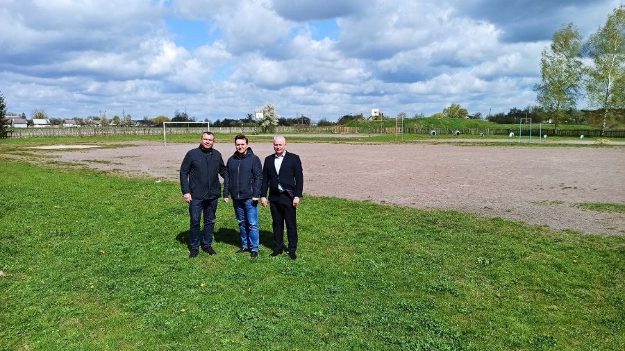 Тому Олександр Омельчук, Юрій Ройко та Олександр Шабала навідались у Карпилівку, щоб оглянути територію школи та визначитись із місцем облаштування штучного поля, яке можна пристосувати до будь-якого ігрового виду спорту – мініфутболу, баскетболу, волейболу.