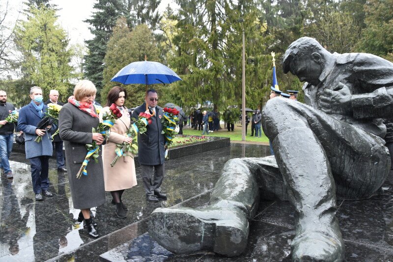 Опісля заступник міського голови Ірина Чебелюк, заступник голови Волинської обласної ради Григорій Пустовіт, заступник голови Волинської облдержадміністрації Людмила Тимощук, ветерани та громадськість поклали квіти до пам’ятного знаку “Поранений солдат”.