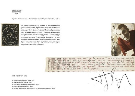 «Чубай писав Лишезі такі листи, яких не писав нікому, говорив тільки їм двом зрозумілою мовою, ‒ розповідає Марʼяна Савка. ‒ Два з них ми вмістили в цю книжку, а Лишега написав ніби відповідь ‒ з відстані років і віку. Оформила книжку мистецька студія «Аґрафка» ‒ Андрій Лесів і Роман Романишин. Ілюстрації намалював її батько, львівський графік Роман Романишин. Максимально використовували вкраплення саморобного оригіналу. Робили відбиток друкарських сторінок. Друкарська стрічка йде лейтмотивом скрізь по книжці, створюючи колажі. Також у оформленні є фотографії Грицька Чубая, уривки його листів, скани автографів. Вийшла дуже персонально Чубаєва книжка, його там максимально багато».