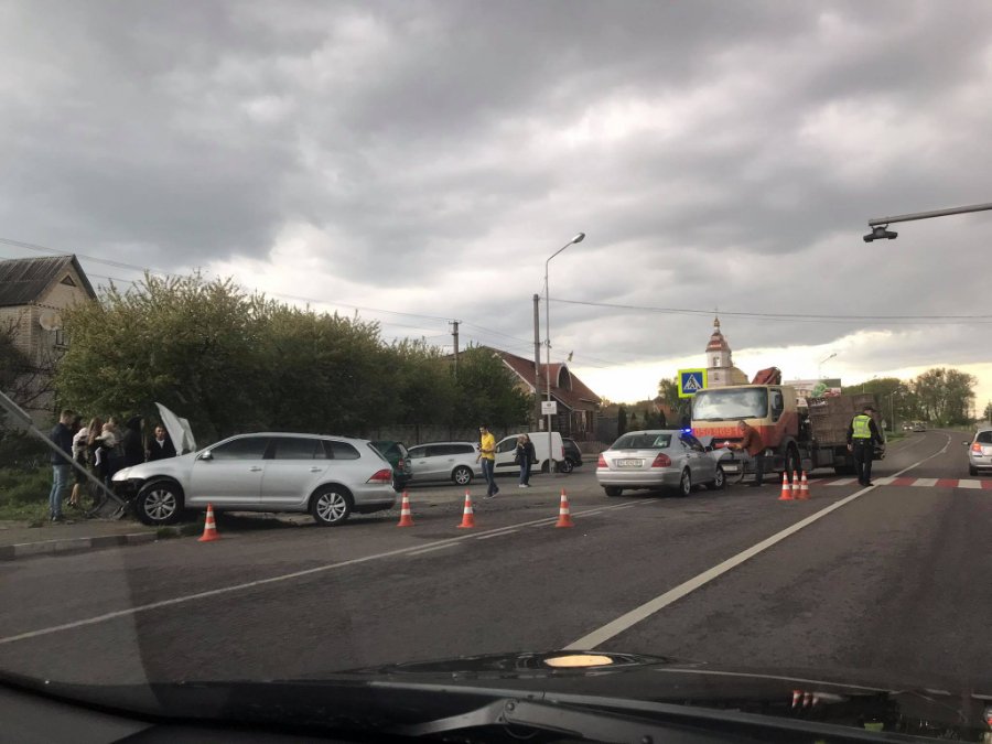 Сьогодні, 16 травня, надвечір в селі Забороль Луцького району сталася аварія. Після зіткнення одна з автівок виїхала на узбіччя і збила дорожній знак.