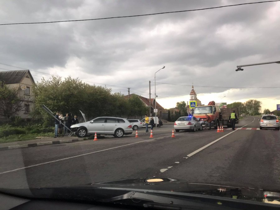 Поблизу Луцька сталася ДТП: водій одного з авто збив дорожній знак.ФОТО