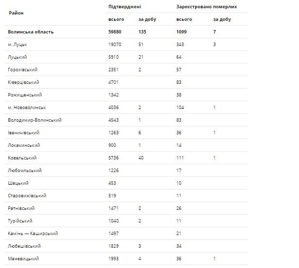 На Волині за минулу добу – 135 нових і 7 летальних випадків коронавірусу