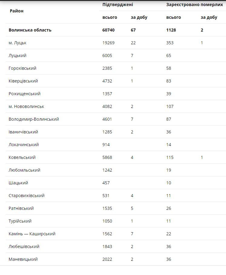 Одужало за добу 108 осіб, летальних випадків – 2, - інформує Волинський лабораторний центр.
