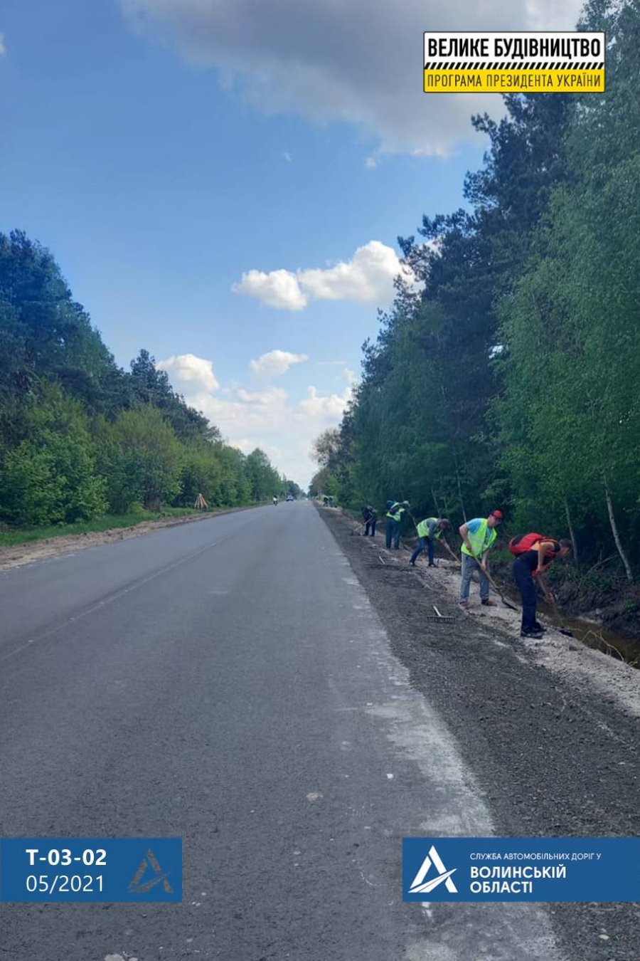 Відрізок дороги Шацьк – Положеве автошляху Піща – Шацьк – Любомль – Володимир-Волинський – Павлівка – Горохів – Берестечко – Козин ремонтували без вихідних та цілодобово, тому вже цими вихідними на проїзній частині дороги завершили влаштування фінішного шару асфальту. Зараз проводиться асфальтування з’їздів та примикань.
