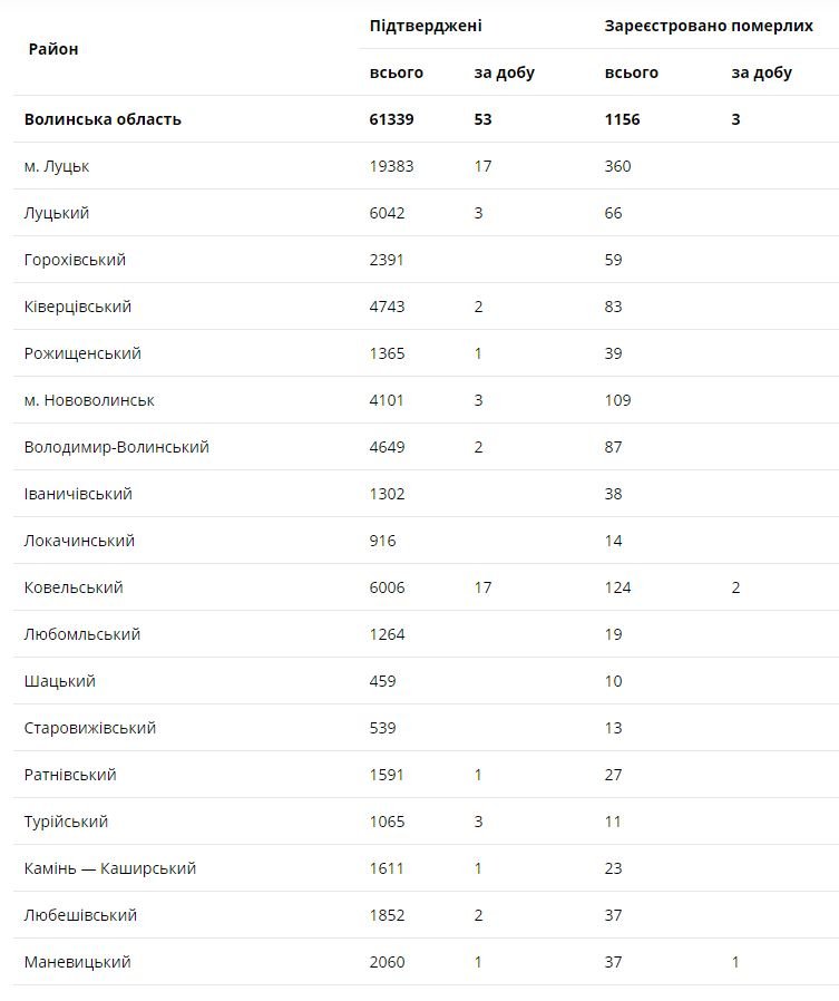 Одужало за добу – 497 осіб, летальних випадків – 3, - інформує Волинський лабораторний центр.