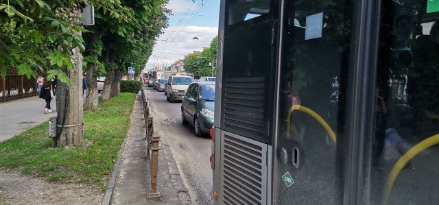 Зазначають, що автомобілі та маршрутки можуть об'їхати, а ось тролейбуси стоять.