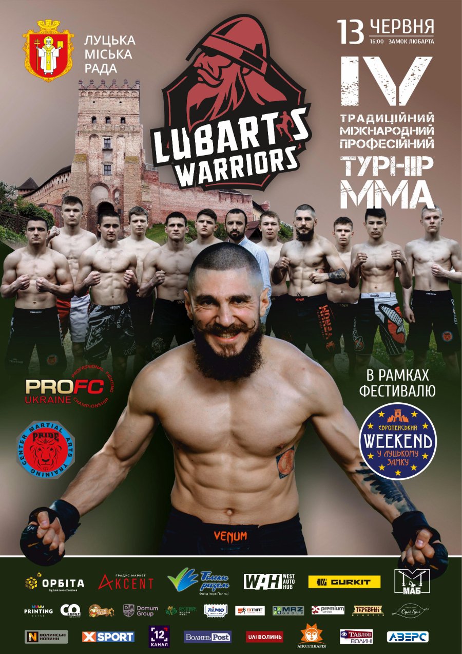 В рамках фестивалю «Європейський weekend у Луцькому Замку» відбудеться ІV Традиційний міжнародний професійний турнір з ММА «Lubart’s Warriors».